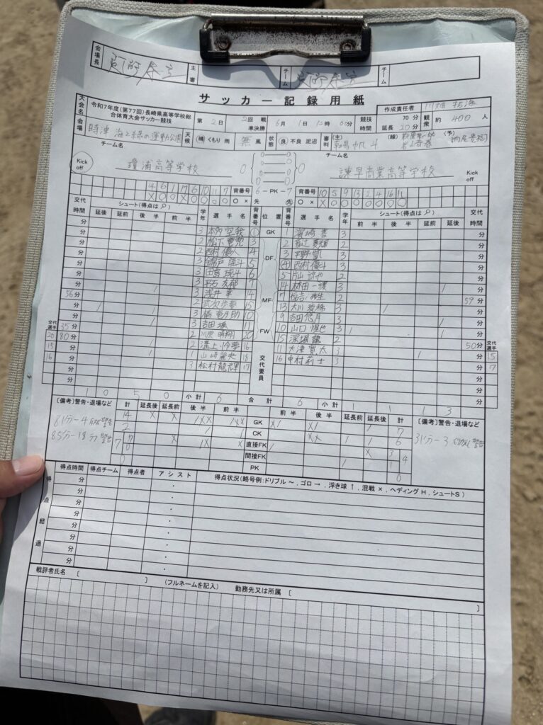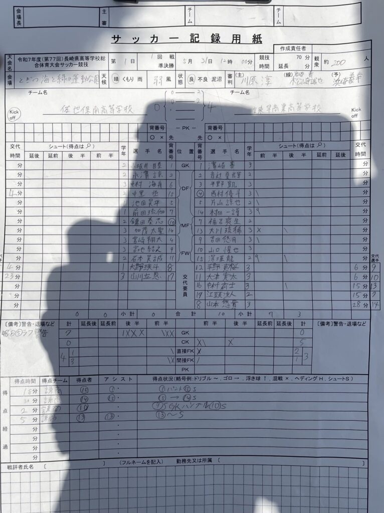 試合結果 諫早商(0-0)鎮西 延長(0-0)PK負け